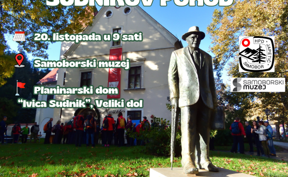 Dragi planinari, ljubitelji prirode i sugrađani, HPD “Japetić” i Samoborski muzej 20. listopada 2024. organiziraju tradicionalni Sudnikov pohod povodom obljetnice rođenja velikog Samoborca, dugogodišnjeg ravnatelja Muzeja i predsjednika “Japetića”, počasnog gradonačelnika Samobora – Ivice Sudnika. U 9 sati okupit ćemo se ispred Samoborskog […]