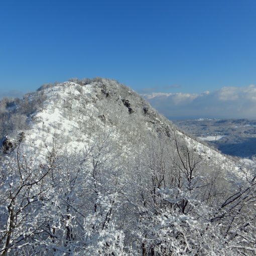 Spustili smo se dijelom puta istom stazom, razdvojili se s onima koji su odlučili da im je jedan vrh dovoljan pa krenuli prema Ljubičkom brdu. S ceste smo krenuli nekom izohipsom jer je GPS pokazao da smo „samo“ 200 m udaljeni od staze ako presječemo. E, od sad mi izohipsa ima neko drugo značenje. Nakon pola sata kaže GPS još 150 m. Jeeee!!! Gore dolje po stijenama, grabi grane da zadržiš ravnotežu na skliskoj strmini…ups, suha grana…i tako još neko vrijeme dok konačno nismo izašli na čistinu s pogledom na vrh Ljubičkog brda do kojeg je još dobrano trebalo potegnuti. Na vrhu je dosta oštro zapuhalo pa se nismo zadržavali previše, nego krenuli drugim putem nazad. Kojim putem? Nema puta! Opet „na divljaka“, oštro dolje, pa po izohipsi (drugi put!!!) u potragu za stazom. Strmina, snijeg, kamenje, velika stijena koju smo uspjeli zaobići (osim Drage koji se je hrabro po njoj spustio), sve u svemu pola sata borbe s prirodom dok nismo došli na stazu. Ali tako je to kad naša Branka F. vodi izlete, uvijek uzbudljivo i zanimljivo. Ostatak puta do doma bio je šetnja nakon svega što smo savladali.